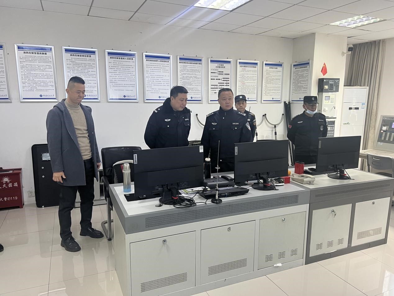 检查中,王警官实地走访明德楼消控中心,对校内保安巡逻记录、保安值班情况、监控设备、必要的防护装备进行检查,确保校园值守人员履行工作职责。走访教学楼、学生宿舍、操场与室内体育馆等区域,对消防安全隐患与消防设备情况进行检查。对检查中发现的问题,现场提出整改意见,并就加强校园安全管理,定期维护消防设施和监控设备提出建议。