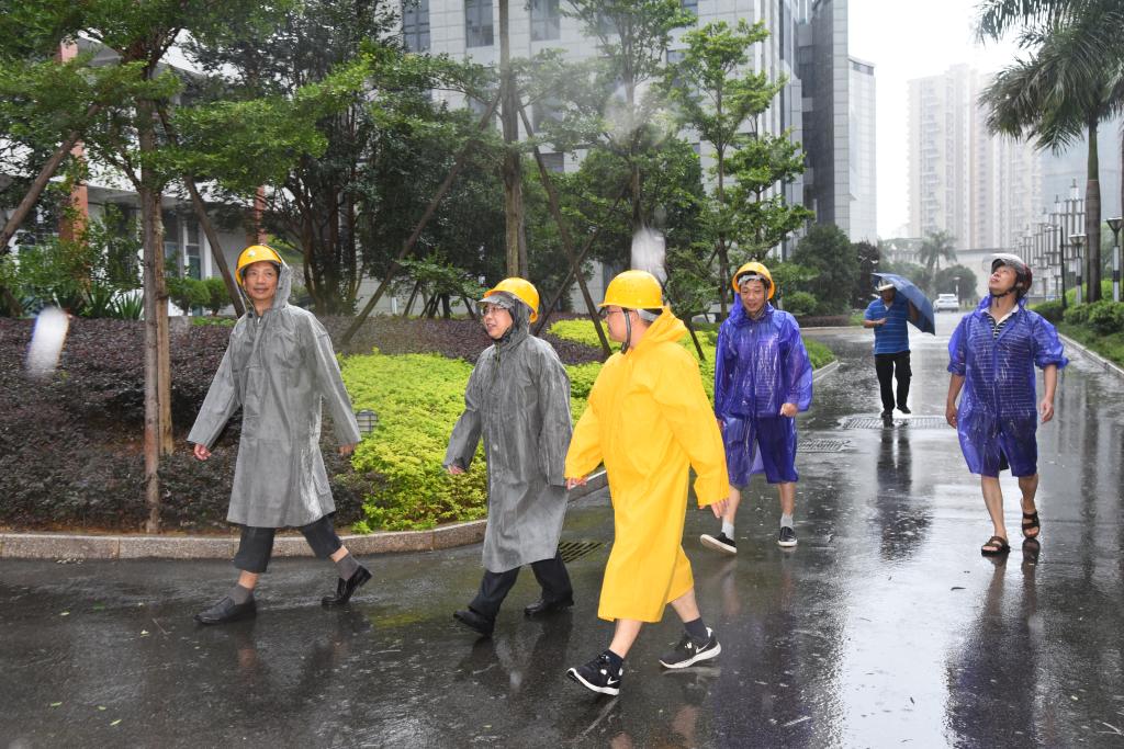 为做好今年第8号台风 “玛莉亚”防御工作,7月11日上午,校纪委书记王幼新受校党委书记陈兴炎、校长吴国荣委托冒雨先后深入2#学生公寓建筑工地、运动场、学生宿舍等校园防台风防汛重点部位,仔细检查应对防抗台风工作情况。