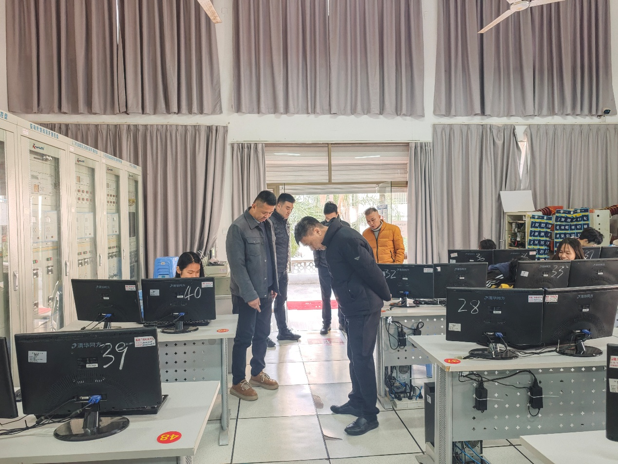 检查组先后深入学生宿舍内部、宿舍外围等区域,细致核查宿舍用电安全、消防设施配置及周边环境安全等情况,重点排查违规用电、安全通道堵塞等潜在风险,确保学生住宿环境安全规范。在博远楼,检查组针对高铁模拟牵引变电所、智慧教室等重点场所开展专项检查,对发现的相关隐患逐一登记。